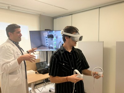 Amaitzeko, IIS Bioarabaren berrikuntza-plataforma ezagutzeko aukera izan dute koordinatzailearen eskutik. Bertan, errealitate birtual eta areagotuko betaurrekoak erabiliz, fikziozko egoeretan murgildu dira. Osasun-langileak entrenatzeko erabiltzen dira simulazio hauek.
